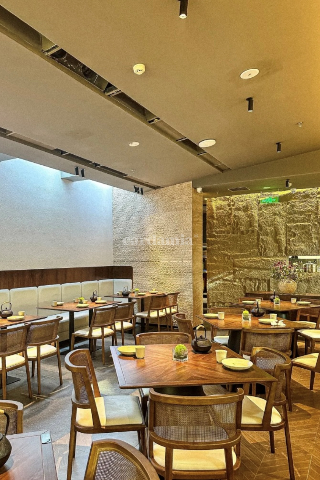 01 新奇做法碰撞地道食材 烟火气与匠人之心永续 于掌勺精选东北本地食材,十二味地道调味料空运而来,搭配外地特产,每一种排列组合,都是让人眼前一亮的激烈碰撞。 于掌勺对锅包肉、地三鲜等经典东北名菜在烹饪方法上进行了创新,从食材到刀工、火候等各个环节都讲究精细,追求完美,既代表了对东北菜魅力的传承发扬,又饱含了对新派菜式的匠心追求。 02 与现代美学的跨维对话 冲破东北菜馆刻板印象 不仅在菜式上别出心裁,餐厅陈设同样极具吸睛之处。店面外观巧用镂空设计,将墙面进行线面分割,营造门店立面的多元性与穿透感。 木质方桌软皮座椅搭配盎然绿植,将东北菜从传统的大炕大灶大乱炖的刻板印象中解放出来,却又展现了东北人大繁至简的豪爽。 墙面选用可达美柔性岩板-图尔粗条石配合木质隔断,打造出就餐空间的层次感,店面亦一改常见的东北菜馆的配色,在微黄的灯光下,处处体现出时尚的摩登气息。 图尔粗条石有着较为粗犷的手感,纹路凹凸有致。藉由这种粗犷中带有历史厚度的材质,铺述了复古与朴质的况味,为食客带来别样的就餐体验。